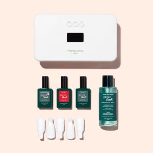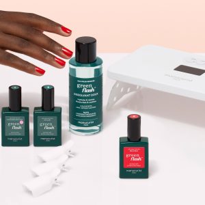 All the essentials for a Green Flash? gel polish manicure in one kit. featuring the patented KeraHCE+ technology in the Vitaminized Base Coat Green Flash?. for fortified nails under color.
